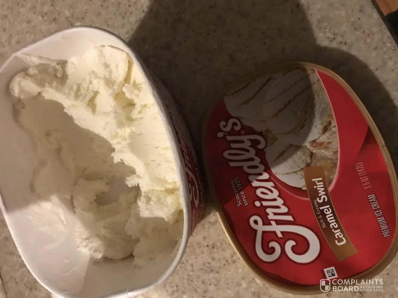 I recently bought a half gallon of Friendly's Caramel Swirl Ice Cream at my local ShopRite. When I opened it I was surprised not to see any caramel swirl. I figured it was lower. Well now I am down to less than half and there is NO caramel swirl! This is plain vanilla ice cream. Can you please refund me? I think the purchase price was $4.49. Thanks Rob DiLeo [protected]. Email robert.[protected]@hotmail.com