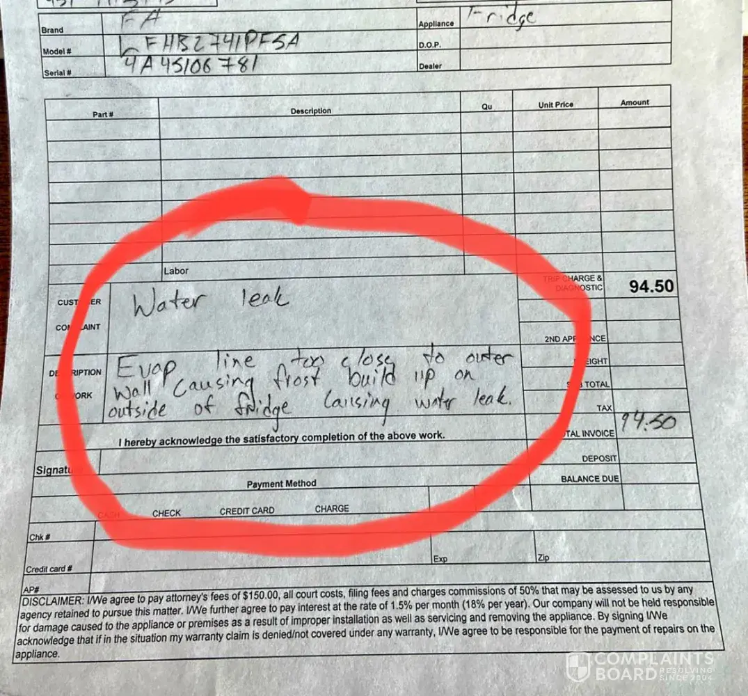 Read full complaintRefrigerator/freezer warranty
