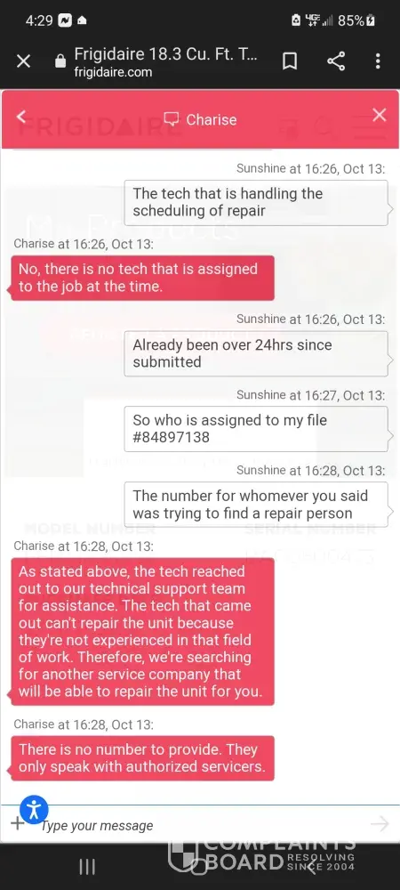 This is VERY VERY VERY unacceptable from an employee and even more so from a big manufacturer such as FRIGIDAIRE.