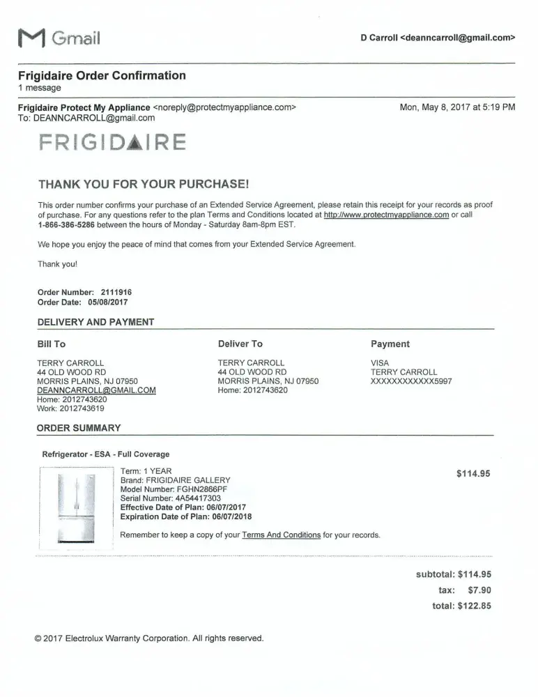 My husband and I just had a similar experience with Frigidaire after our stainless steal microwave burned out after only 2 months. They jerked us around, made us write a statement that we had to send certified and then refused to reimburse us even though we sent a copy of the receipt with our name on it that Lowes had given us. This, started right before Hurricane Irma and they made us jump through hoops as we were recovering from losing part of our home in the storm. Still they denied us and wouldn't reimburse us. We also WILL NEVER BUY A FRIGIDAIRE PRDUCT AGAIN! Terrible Company!