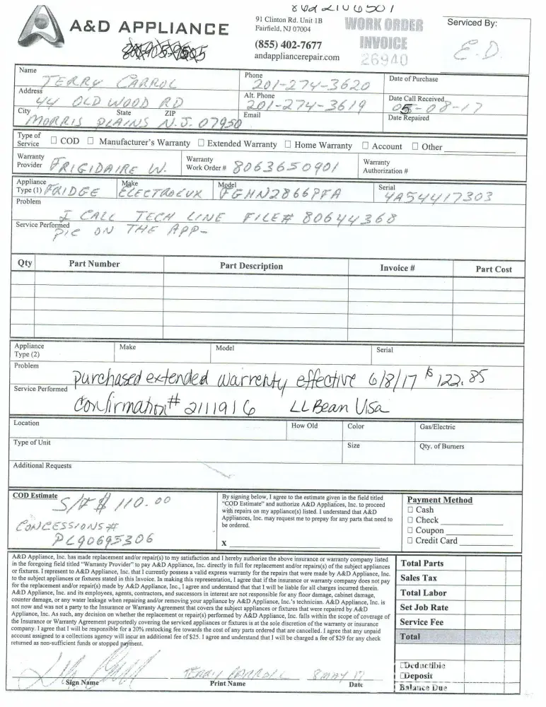 I called Frigidaire, gave them the warranty information & asked what I should do.