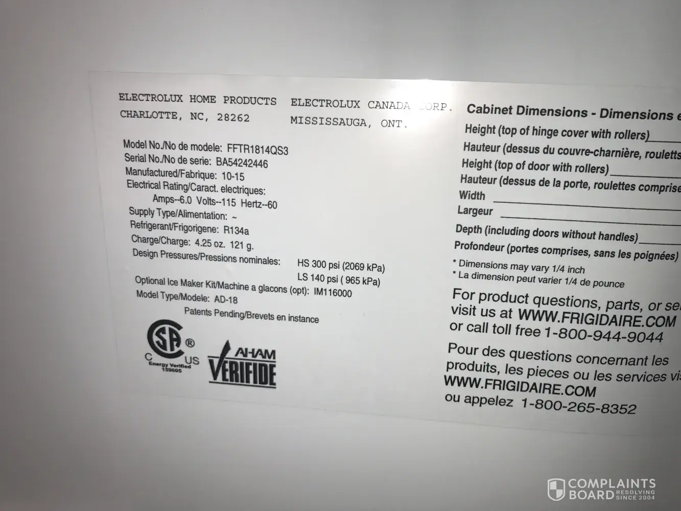 We have been waiting for a new part for over a month, which is on back order, so they say… every time I call frigidaire to check on the part, I ask to speak to a supervisor and they never connected me with one. They are just wasting my time over, and over. They all say the same think like they are “programmed†- they sound just like robots… this is very frustrating, and is affecting my health and my quality of life. I’m looking for my money back, and they can come and get this faulty product out my house, since I cannot trust their product any more. I have to buy the rest of my kitchens appliances it won’t be frigidaire that’s for sure. I am not confident that any repairs or replacement will resolve these issues. I spend my time, energy and have no enjoyment nor full use of my investment. This is very sad that people have got go through something like this.