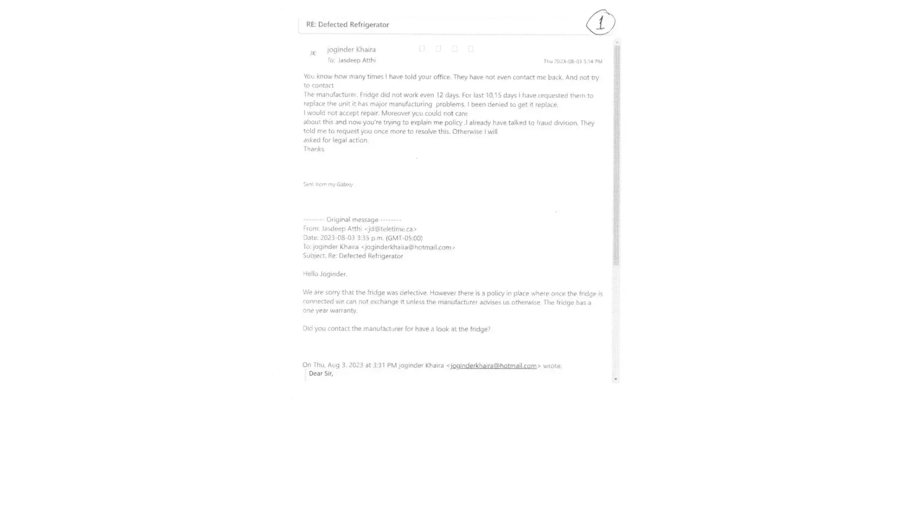 I have attached all my e-mails back and forth. Again I been denied to get replaced or refund.