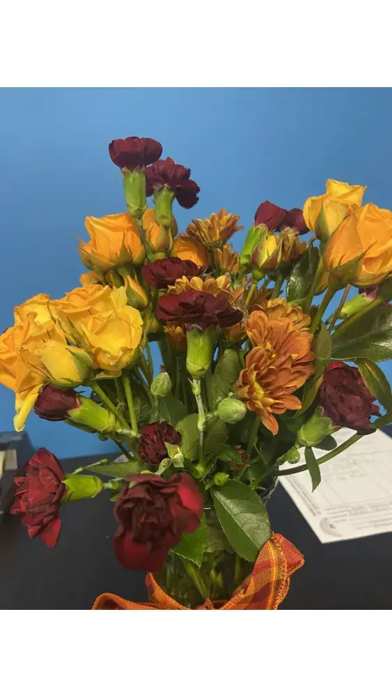 Flowers were delivered day late and missing some hot pink asters and red carnations, also orange roses didn't looked fresh.This is unacceptable,I paid for bouquet that had some missing flowers and the delivery was day late.