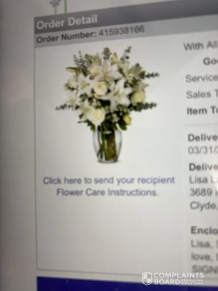 DO NOT use this company. There is something seriously wrong with them. They are scammers. Customer service is almost non-existent. I placed an order online today for funeral flowers and received a voice message from them to call them. I had been on hold for 32 minutes so I called back using my land line and pressed 1 for ordering. Needless to say, someone answered and put me on hold again and transferred me to a department called Respective Department and said that I had complained in the past so they would not do business with me and issued a refund.