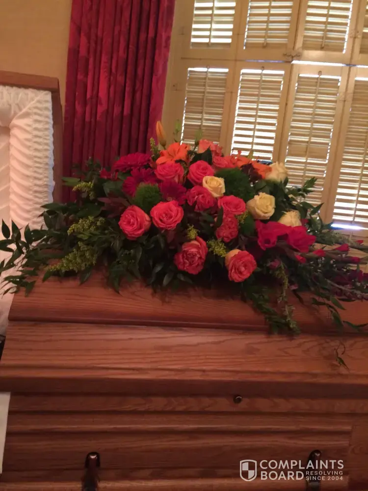 I ordered a masculine casket spray on 1/2/19 that did NOT have bright pink or red flowers for my nephews funeral on 1/5/19, what I received was a wedding bouquet! I specifically selected a spray that had darker colors and would go with the color scheme of my nephews outfit and other flowers that were ordered. It was extremely bright with nothing but bright pink, white and red roses! It looked like a circus spray! I would like a refund! I paid almost $200 for this spray and I am very unsatisfied.
