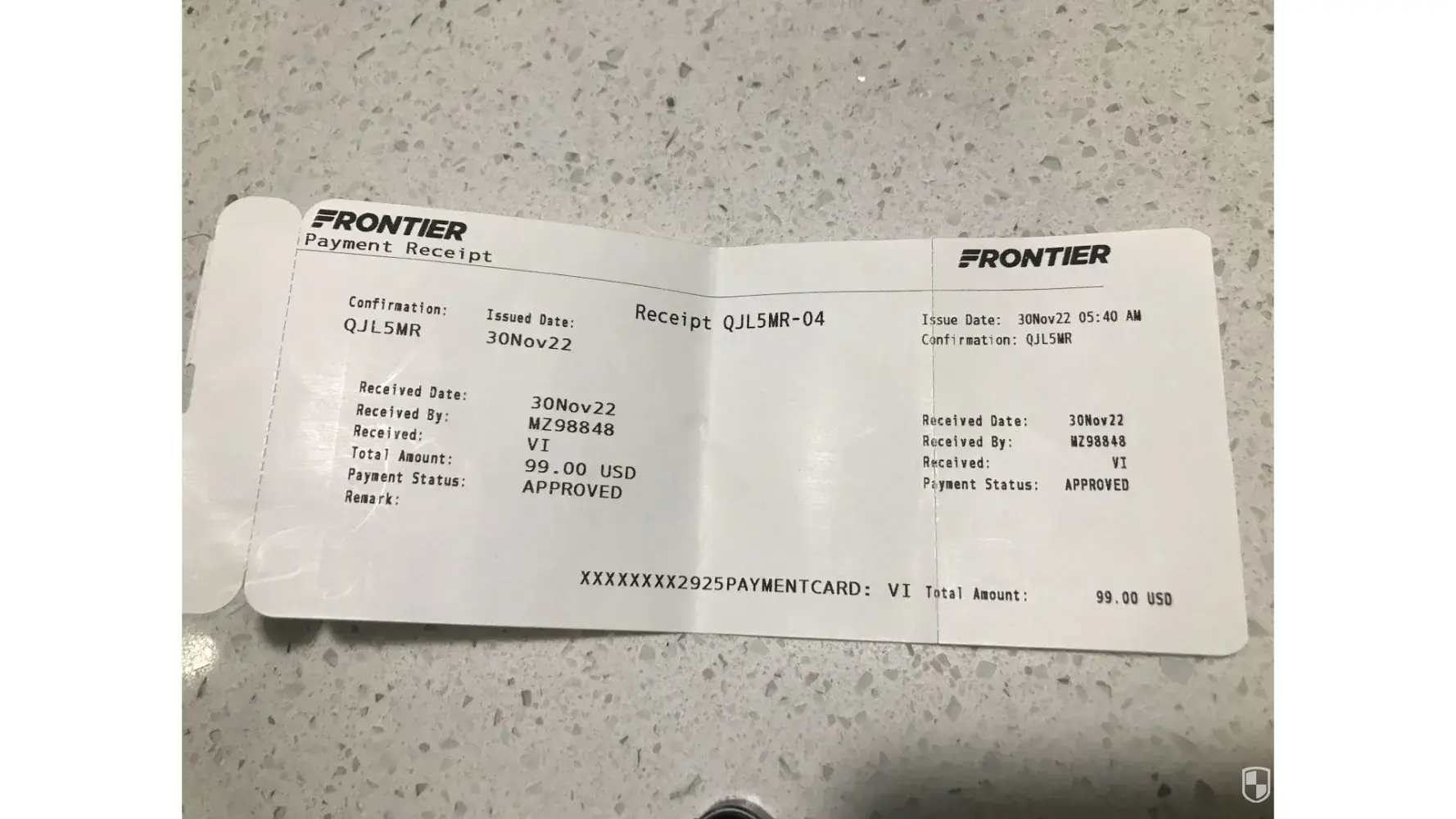 Unauthorized charge of $99 to my frontier airlines mastercard