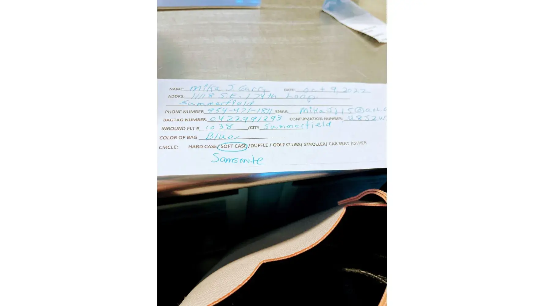 The day after I got home on Oct 13, I received a call to come get my bag