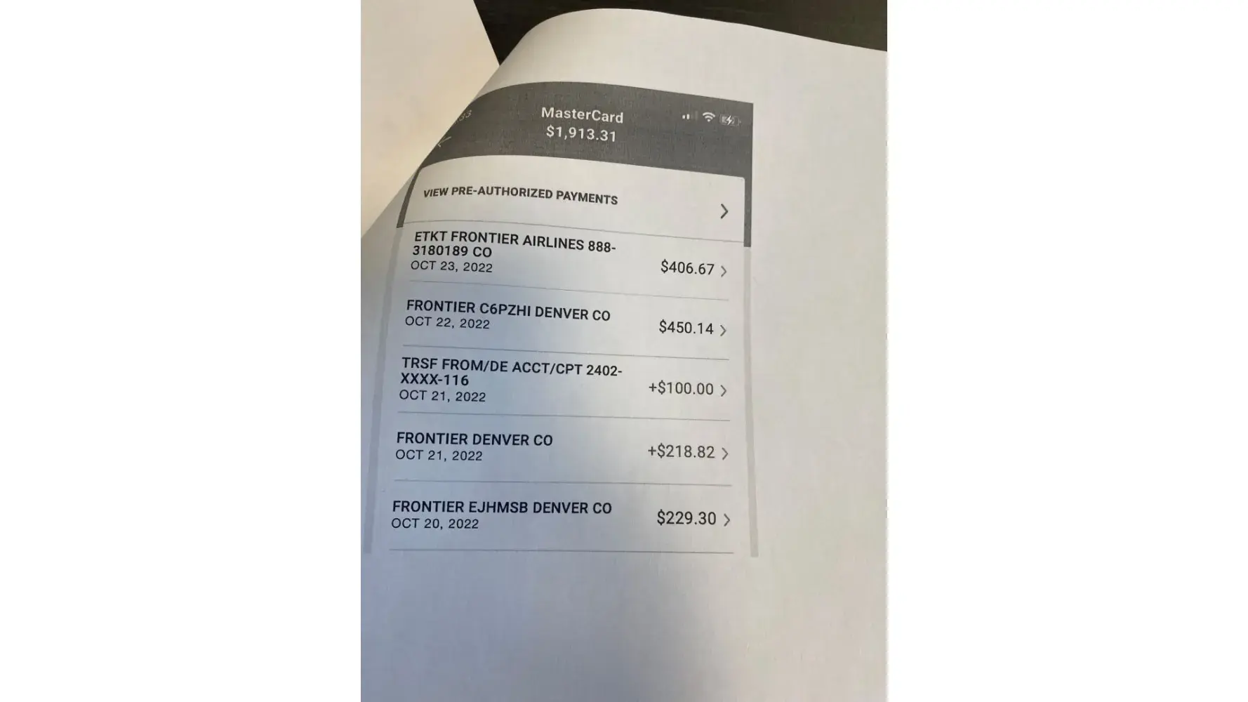 Frontier Airlines Credit Card Charges