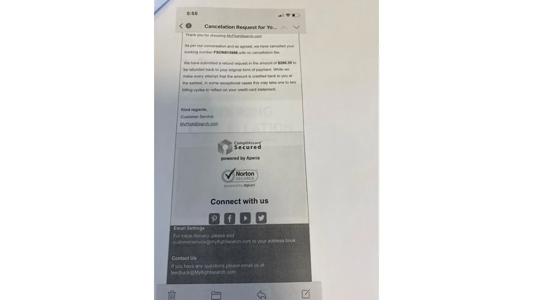 Desired outcome: refund.