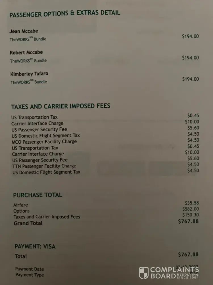 Frontier Airlines The "works" - reservation number eilznb - reference #: [protected]