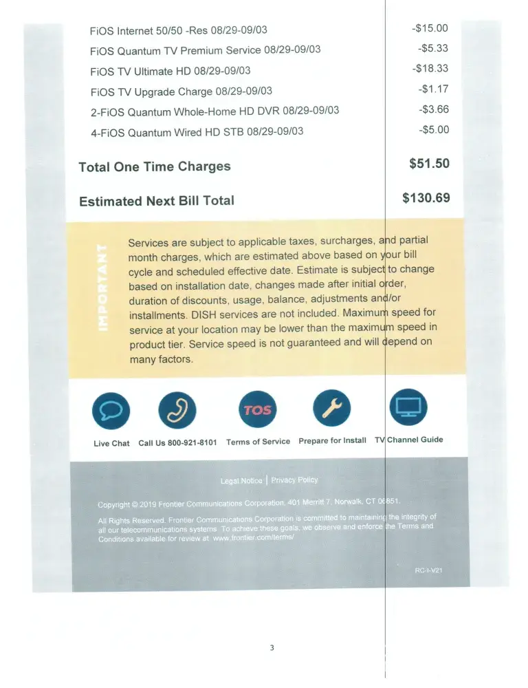 Frontier verbally transfered a internet service contract to me from another individual without letting me know they were also transfering a voip line. Which I would have declinded if they told me about it. I have auto paid my bill for almost 5 years. $1200 in a service I didn't ask for or needed or even used. They wouldn't even issue me a partial refund