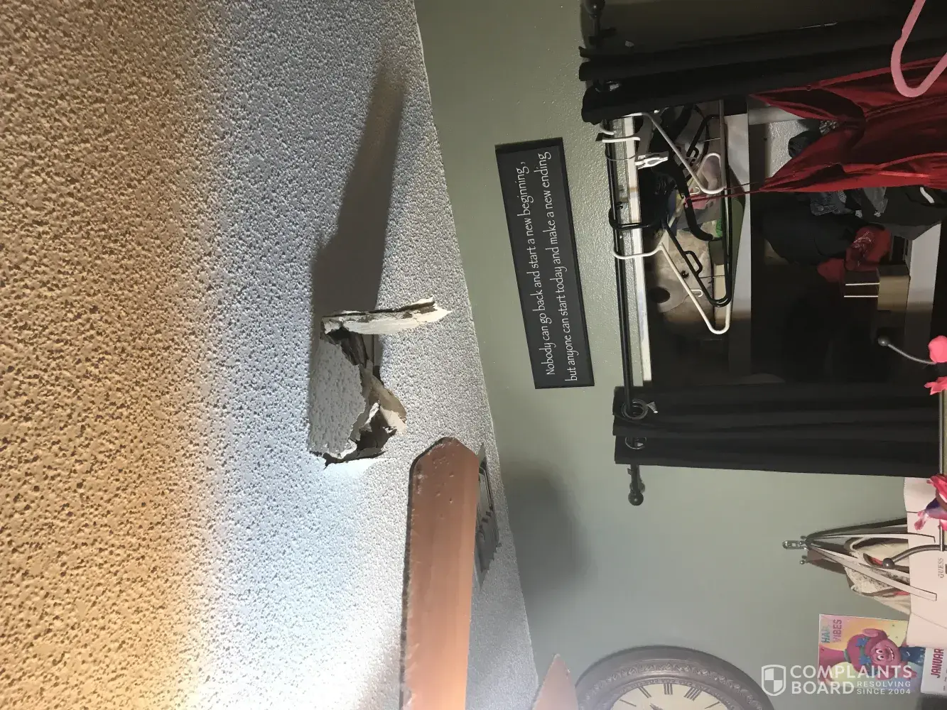 Install guy came to install internet . He went in the attic to drop a line . I had bedroom doors closed . He installs and leaves . My daughter just cane home from the weekend and opens her bedroom door to giant HOLE in her ceiling ! Like WTF. No kone is answering the phone at Frontier . I need this fixed. This guy NOTHING to me !! Nothing, how do you not...