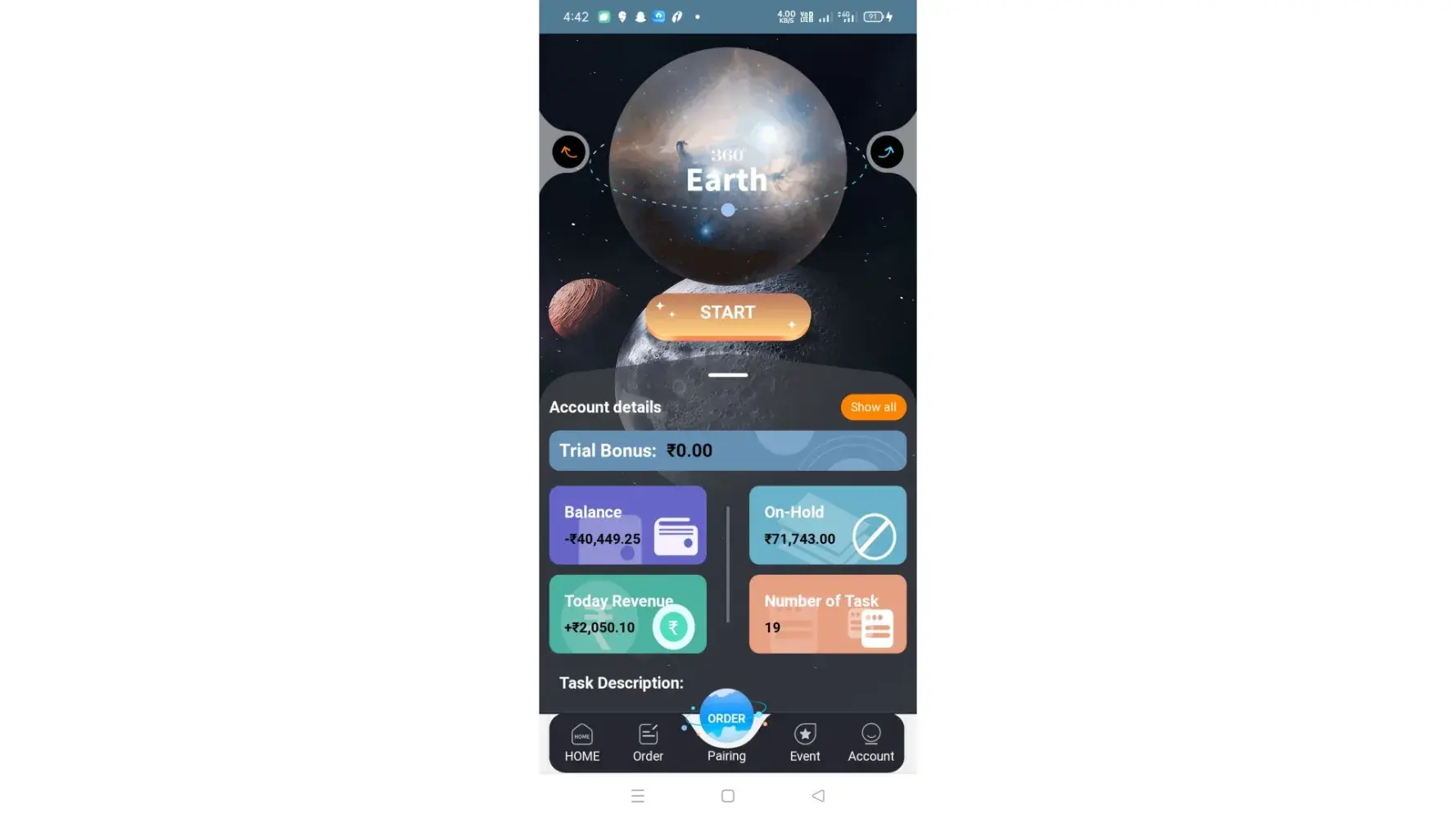 One task deposit required 11k,20k, 30k and complet 30 task to varieous location rating travel location... But after completed 10-12 task you received advance task and your balance show negative, first you clear this negative amount and then withdrawal all amount possible... After 20-25 task complet then again same advance order task received... And they call u are lucky for this advance received task you get 5x commission... Clear negative balance and withdraw all amount... Agent or cs team not share his no. Only answer in telegrame msg only.