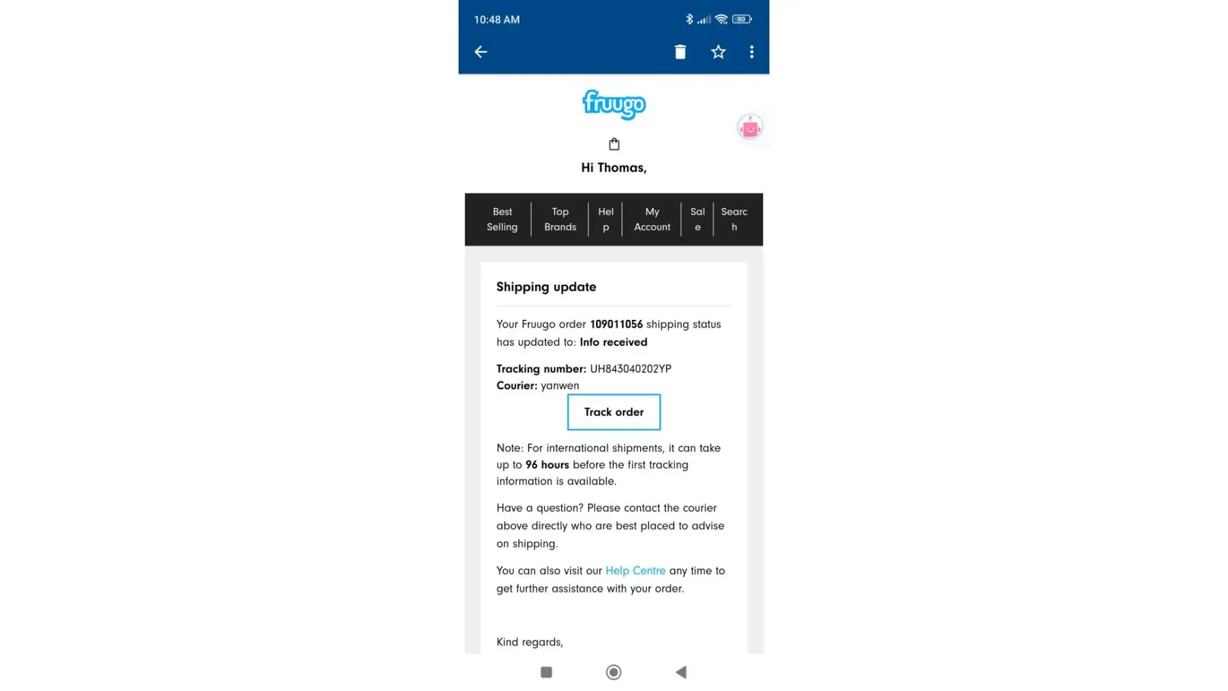 After I placed my order, I received an email notification indicating that my order had shipped from Australia and included a tracking number. I waited patiently for my package to arrive, but after a week had passed, the tracking status still showed that the label had been created but not yet processed. This concerned me, so I decided to contact Fruugo's customer service team to inquire about the delay.