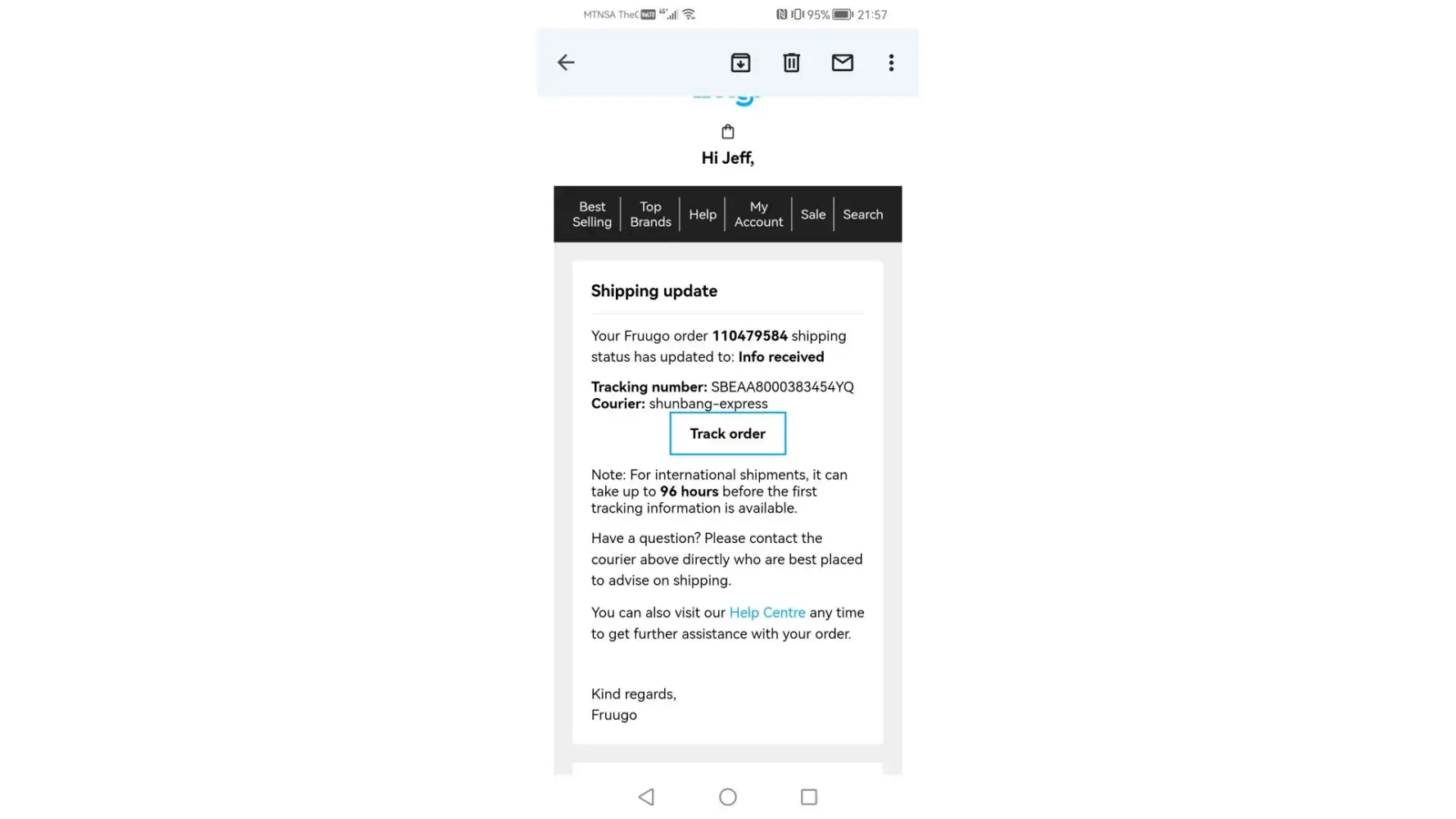 To my surprise, I received another email notification indicating that my order was shipping from France, and the tracking number provided was different from the original one. I was puzzled as to why the shipping location had changed and why the package was now being handled by a different shipping company. I tried to get in touch with customer service to clarify the situation, but they ignored my inquiries.