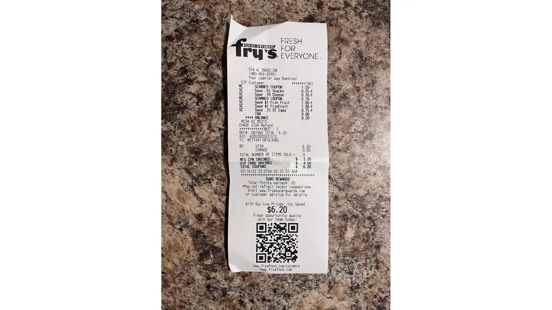 Today, 3/6/2023, I went to the Fry's store: 7770 E. McDowell Rd Scottsdale, AZ. checkout: 12:46pm