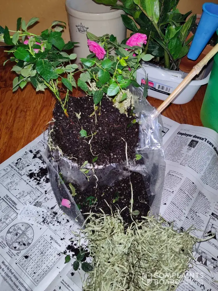 I sent "Young Love Pink Rose Plant" to a friend. Order no. [protected]. The rose plant when opened was out of the flower pot and dirt also out of flower pot and the plant in parts. My friend had to assemble it back together. The flower should have been packaged better for delivery with sufficient wrapping to keep it intact upon delivery through UPS. Photos attached as to what it looked like when opened and the third photo is what the flower should have looked like upon delivery.