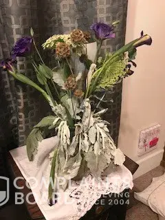 Flowers were left on my front porch sometime on 7/27/18. Unfortunately it was a hot and humid day in Petersburg, VA. When I found them that evening I immediately followed the instructions and put them in room temp. water hoping they would come back. I'm not sure what the flowers were supposed to look like but I've attached pictures of what I got. Please see attached and let me know how to either receive new flowers or refund the $$ to the person giving me the flowers.