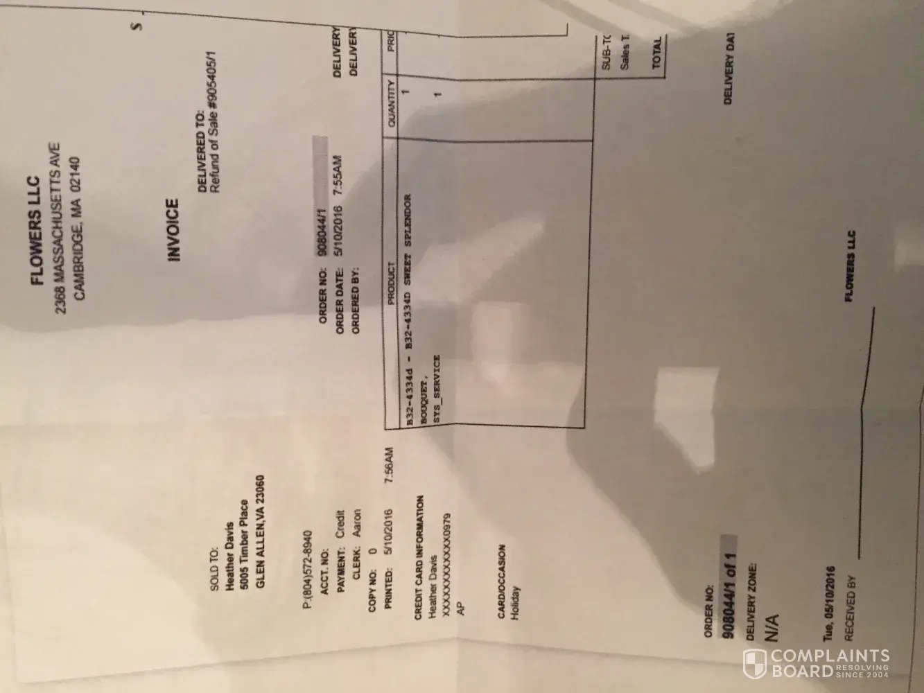 flowers were not delivered