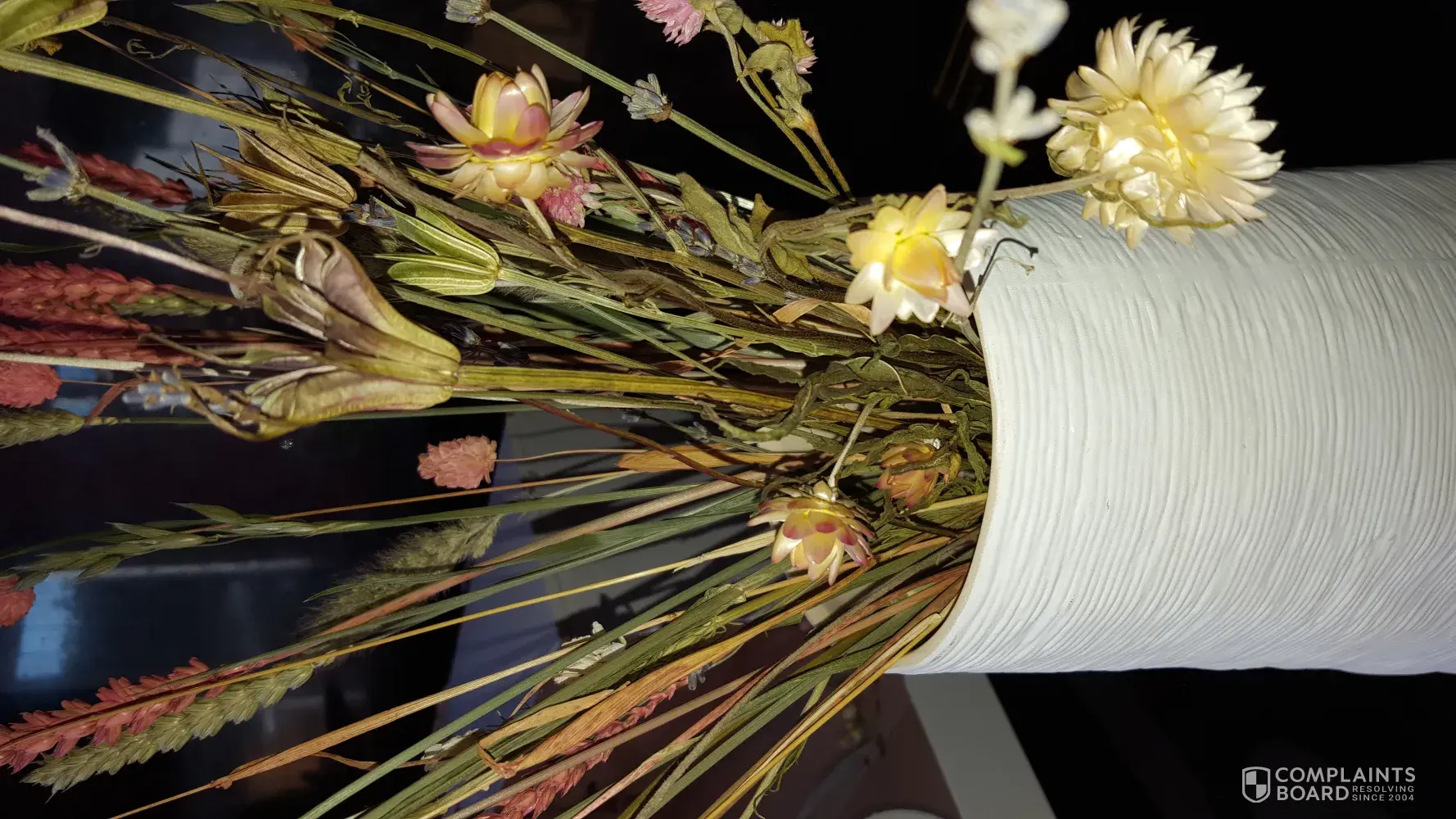 Just received a bunch of dried flowers sent from my husband. I am absolutely shocked. Loose bits were in the box, obviously dead stem in the bunch and every time I move them bits drop off. The description on line says they will last a year. I don't believe they will last a week. So angry, especially when I saw the price and I had to pretend to my husband they were lovely to avoid hurting his feelings.