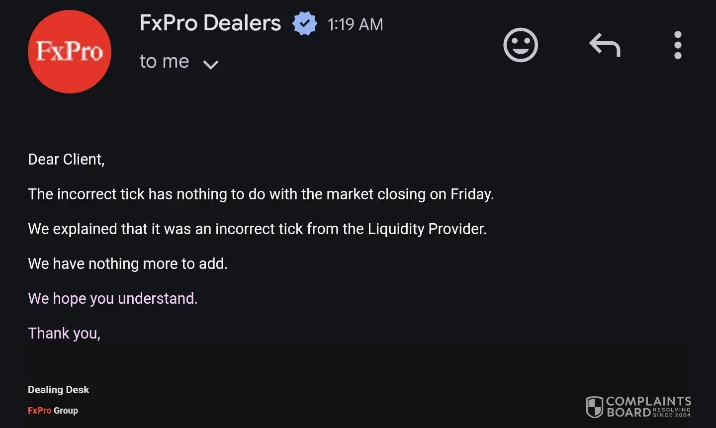 I traded silver on Dec 28th, when I profited $260,000. I was planning my trading for days and this was the best outcome I can ask for. On same day, all my profits was erased. Their excuse; incorrect ticks from liquidity provider. All wiped in what seems a whimy decision.