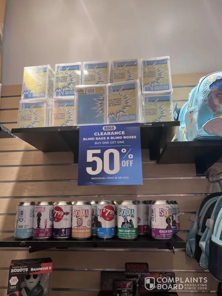 Hi my Name is William im writing this complaint about your FYE store in Citrus Park Mall. I was shopping and noticed a sign by the pops stand above other toys that said half off clear bags and boxes im thinking that the clear pop bags that are plastic and the clear pop boxes. so I get one employee that didnt help and got the manager whos name is JJ I explained to him the situation he said no that for down here 4 shelves down I asked him aint this miss leading he rudley was like no. I then asked him since someone didnt put the sign were it should be can I get a few of them for the price and get the other half off as the sign said he said if I dont know how to read the sign right theres nothing he can do. Wow great customer service for a $7.99 box I told I would write you guys he said so what so I left and I will be on social media and buissness sites with this complaint and tell people not to s