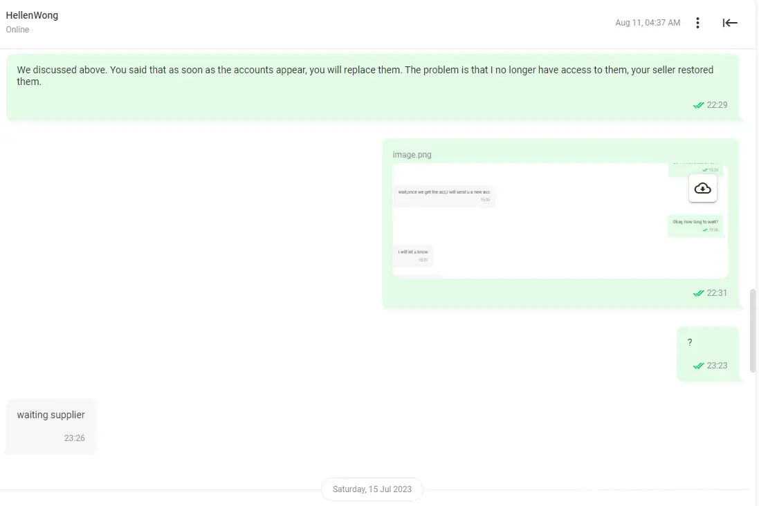 - Later still, seller says he can't get in touch with his supplier.
