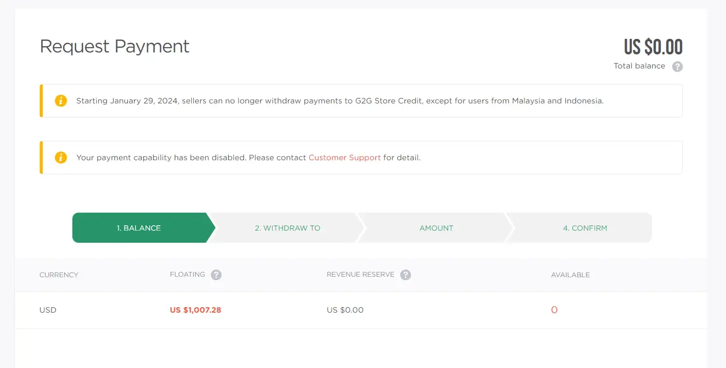 I sell capcut pro and my all customers their confirm orders and give me a good review but g2g have another opinion, I try to withdraw under 30$ and g2g sent it ok but when I try to withdraw 198 they told me your payment capability has been disabled. Please contact customer support for detail. Its really bad bad badddd Its scam guys dont use it 👎👎👎👎👎👎👎