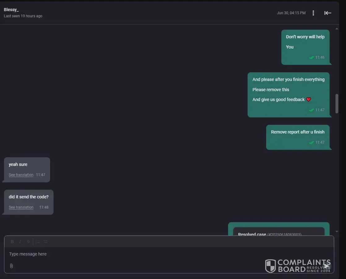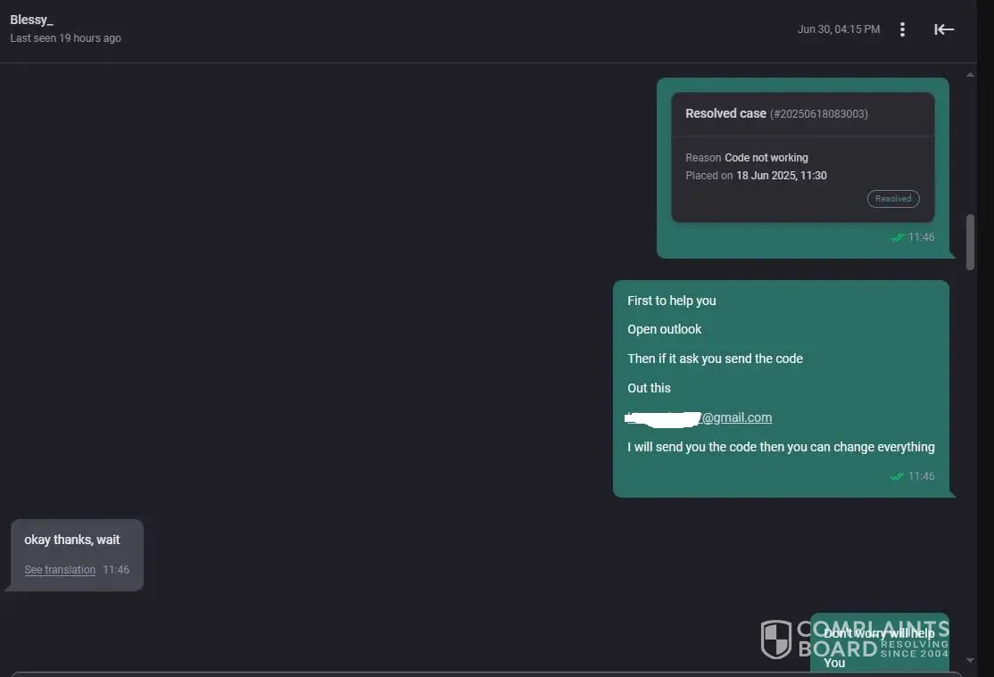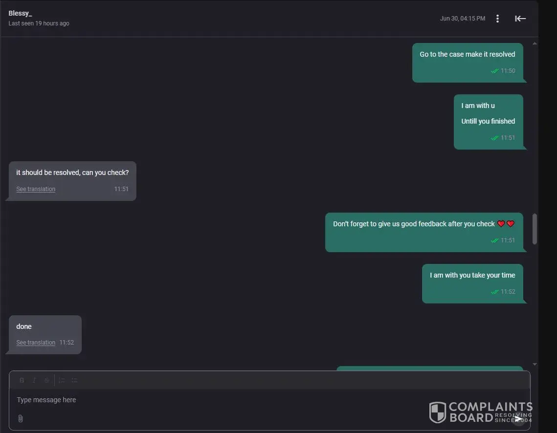 This complaint has been resolved automatically due to user's inactivity.