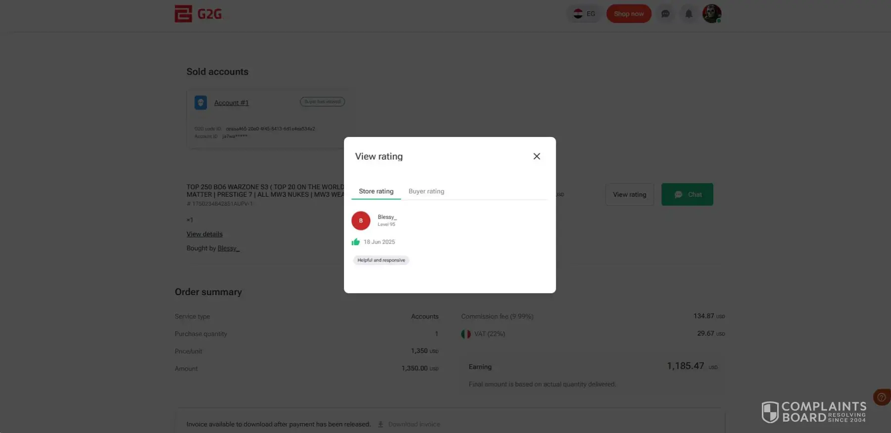 I have been a seller on G2G since 2022. My seller level was 105, and I had a rare ranking with a strong sales history. My store name was BuntyJee ([protected]), and I had more than $1400+ available in my G2G wallet. My account was suddenly suspended due to an alleged high dispute rate. I respectfully disagree with this decision. I always tried to complete...