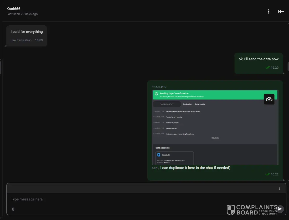 I sold my Dota account, provided all the data from the mail and from the account to the buyer, he went in, checked everything, changed the passwords, confirmed the order and left a positive review, he also repeated many times in the chat that he changed the passwords, everything is ok, but my money was blocked, I provided proof from the mail that the buyer...