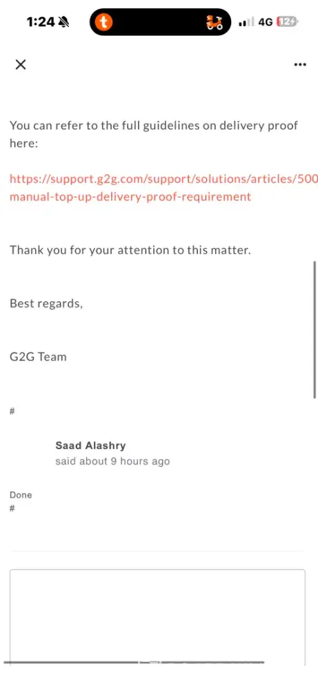 I then contacted G2G's customer support team to report the issue and request a refund. I was hopeful that they would be able to help me out, especially since the money was still being held in escrow and had not been released to the seller yet.