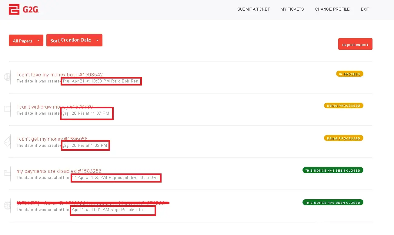 And I was surprised by a false report against me from g2g that I had sold outside their platform, although my money already was in their possession, but it was a report in order for them to take the money from me in a barbaric way, and I even tried and tried to explain the matter, but there was no response from them