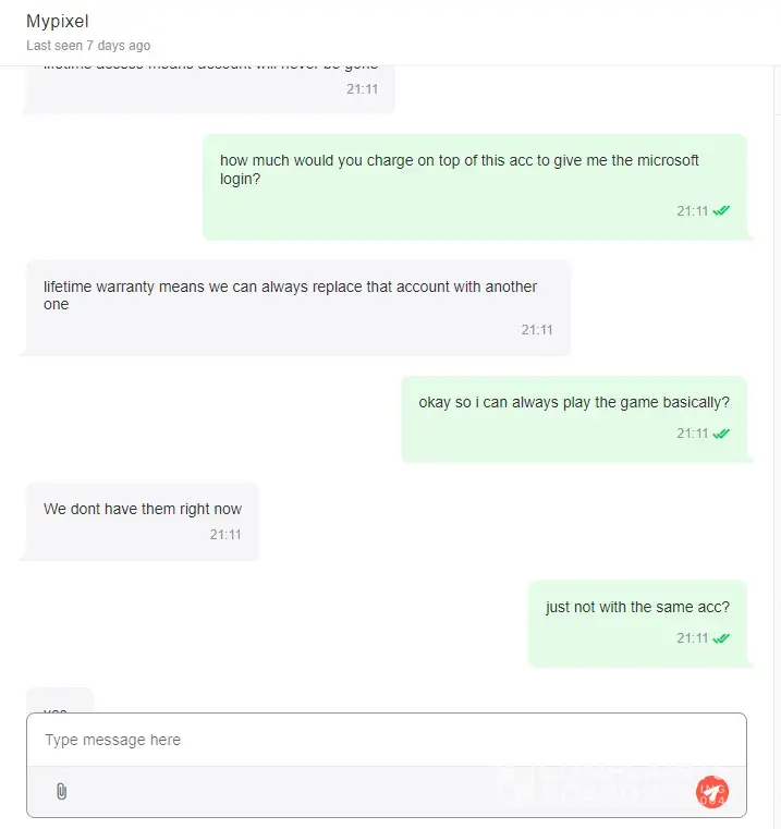 Desired outcome: Firstly, I would either like my refund in full to my bank account, or I would like the seller to keep his agreement and continue my "lifetime warranty" in which he provides me with accounts.