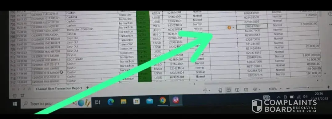Plutard, j’ai demandé à ce qu’on lui fasse le transfert via un point de dépôt orange money. La personne lui a transféré 2.500.000 gnf par erreur et vu que c’était 2.000.000 gnf il demandait, il a ramené les 500.000 gnf. L’agent du point de dépôt orange est disponible au besoin pour vérification vu qu’il m’a remis un fichier Excel me montrant la transaction.