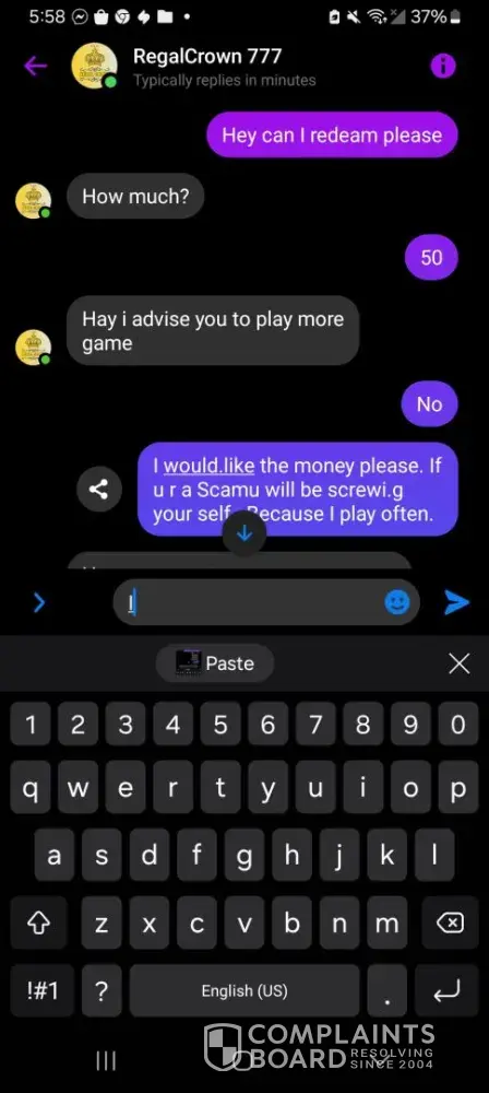 Recommendation: Don't tell people 24/7 cashout and then keep the money and lock them out