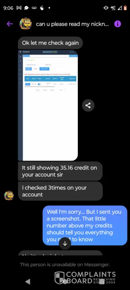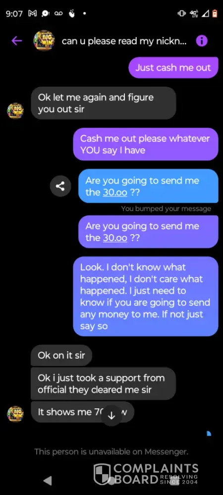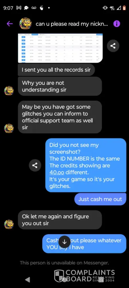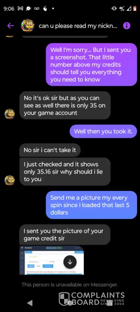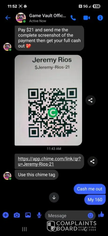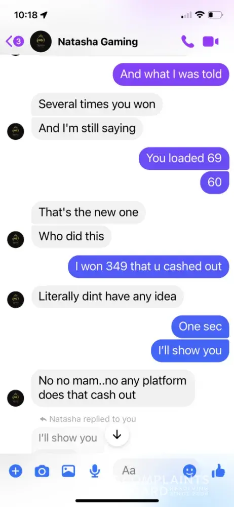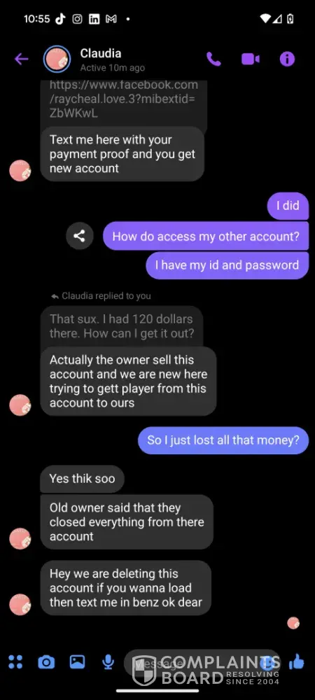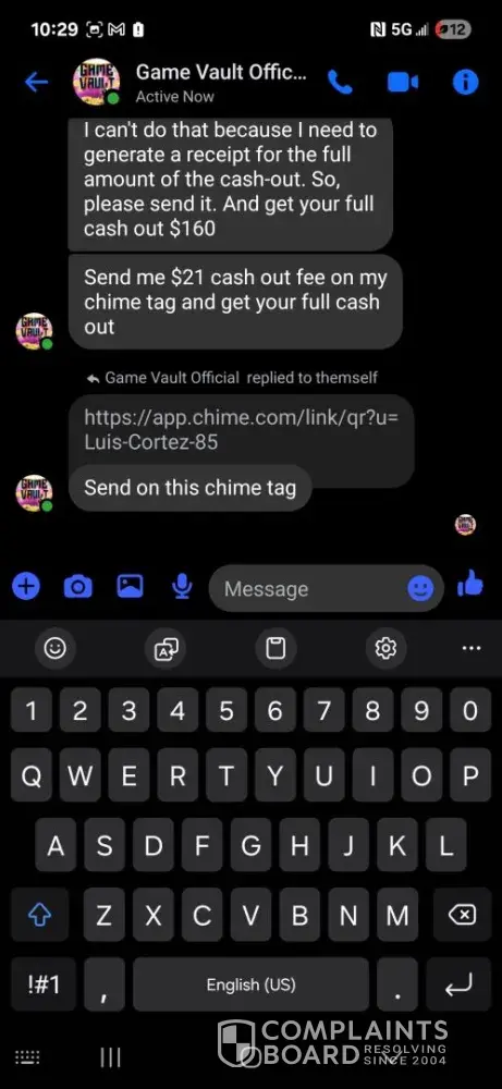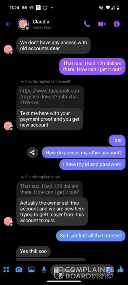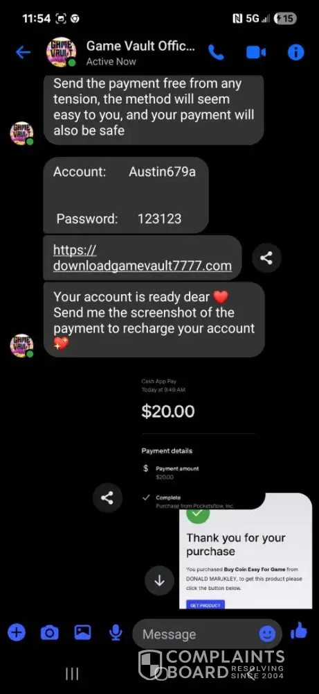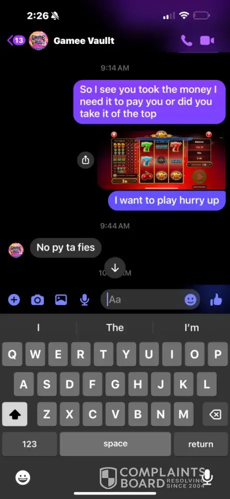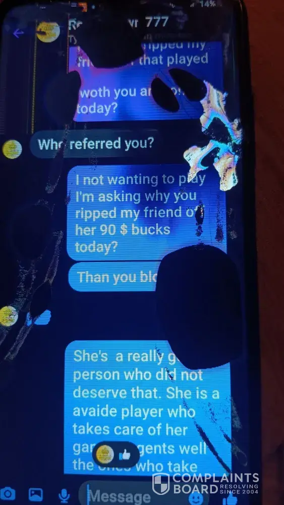 I was playing game vault with a game on fb called Vegas luck they were supposed to cash out 60.69 to me but they rook my money off my game and won’t respond this is there profile link https://www.facebook.com/Thomasshelby.casino?mibextid=AEUHqQ . I have texted them over and over but they won’t answer. I love playing games but feel this is unfair