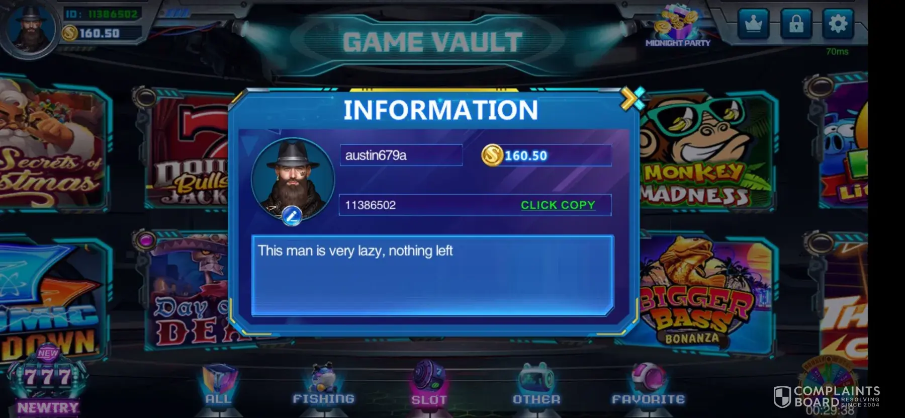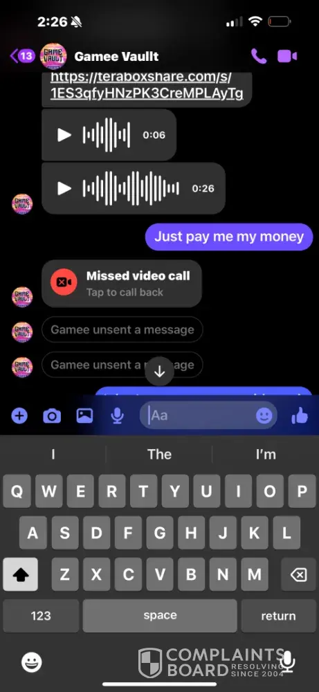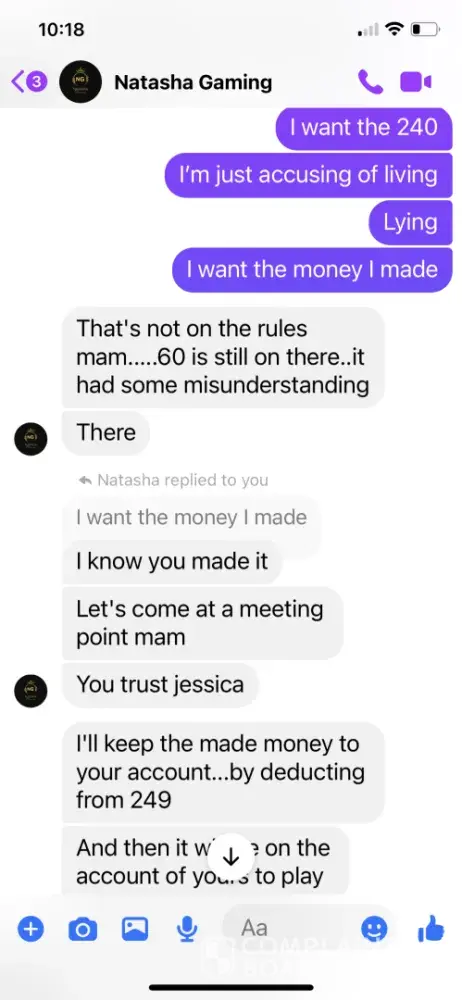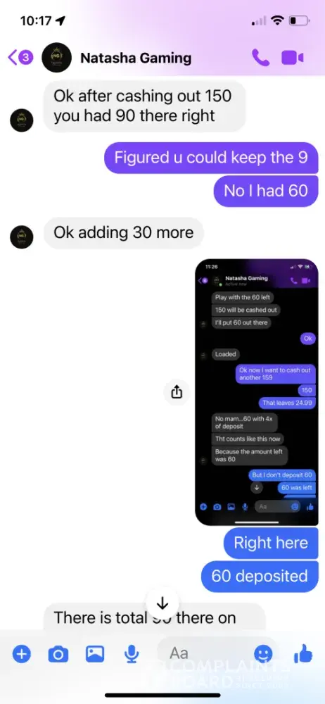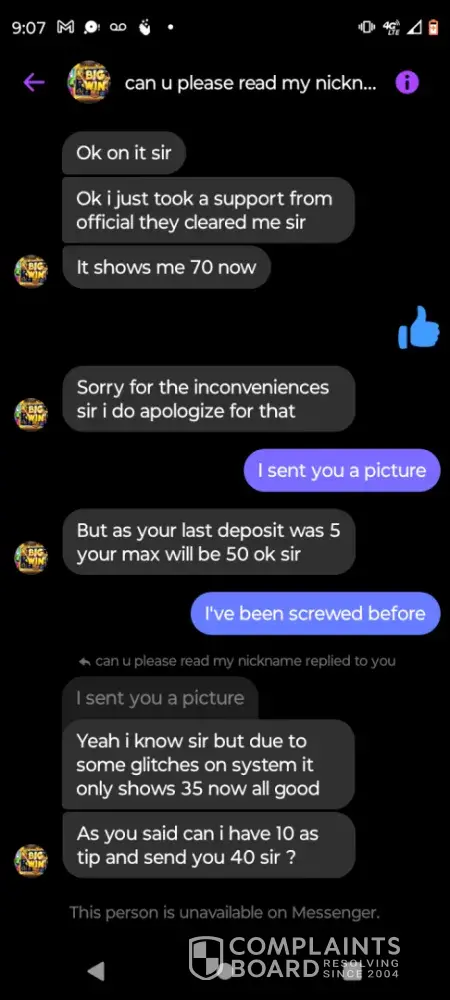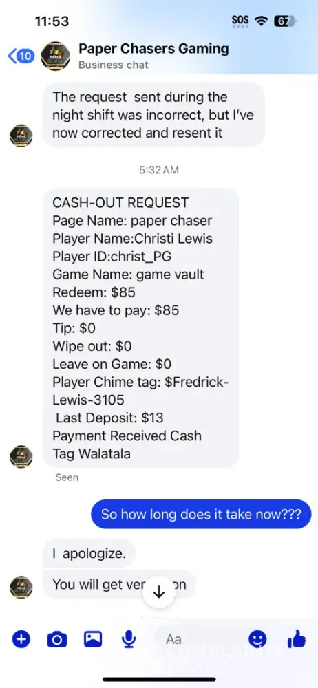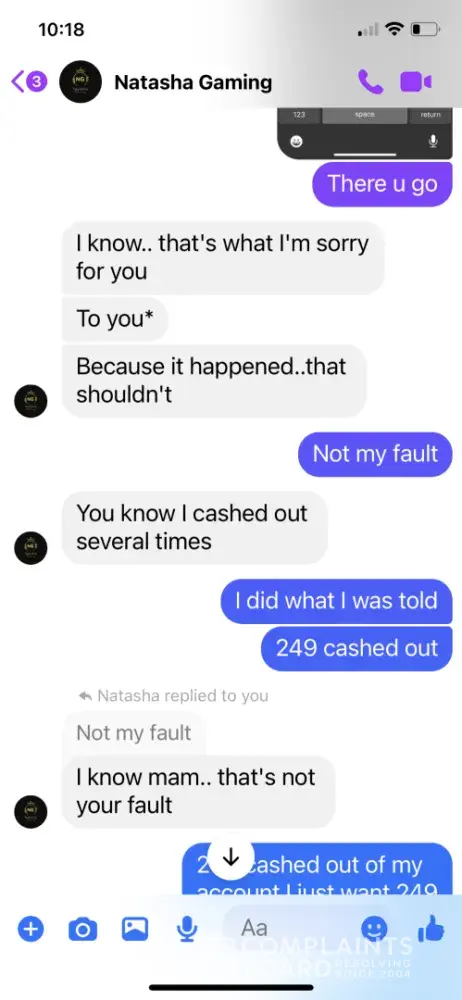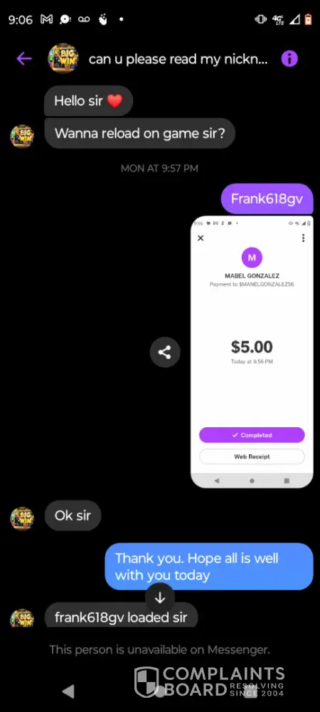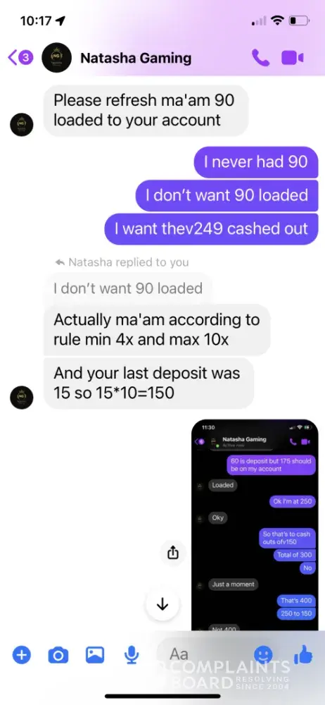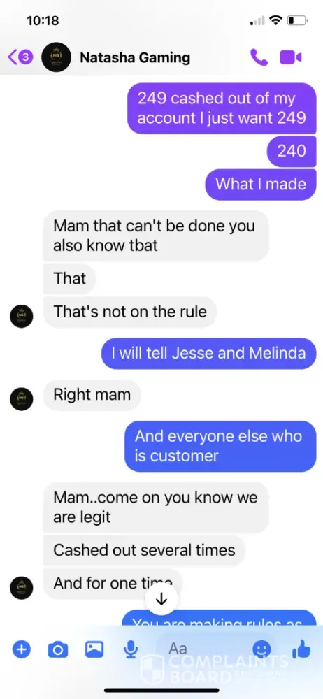 I was playing game vault with a game on fb called Vegas luck they were supposed to cash out 60.69 to me but they rook my money off my game and won’t respond this is there profile link https://www.facebook.com/Thomasshelby.casino?mibextid=AEUHqQ . I have texted them over and over but they won’t answer. I love playing games but feel this is unfair