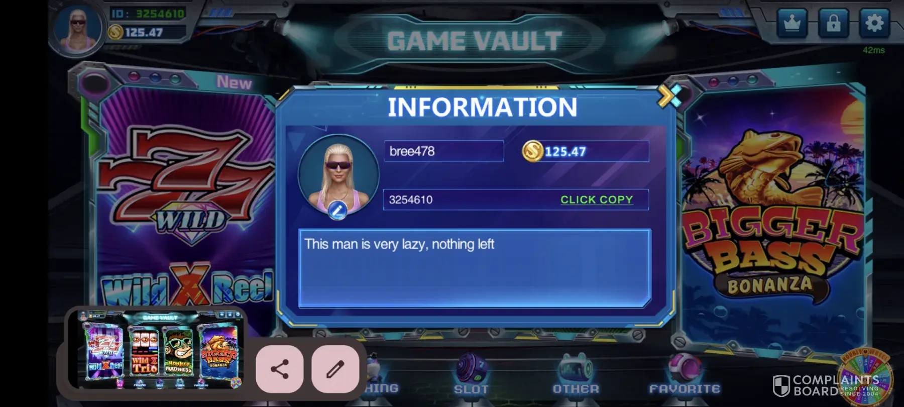Danny’s fishing game one of ur vendors is scamming people out of their money. This is a bad look on game vault and very bad businessI have been playing with them for a while depositing money in residency until now when I actually decided to redeem