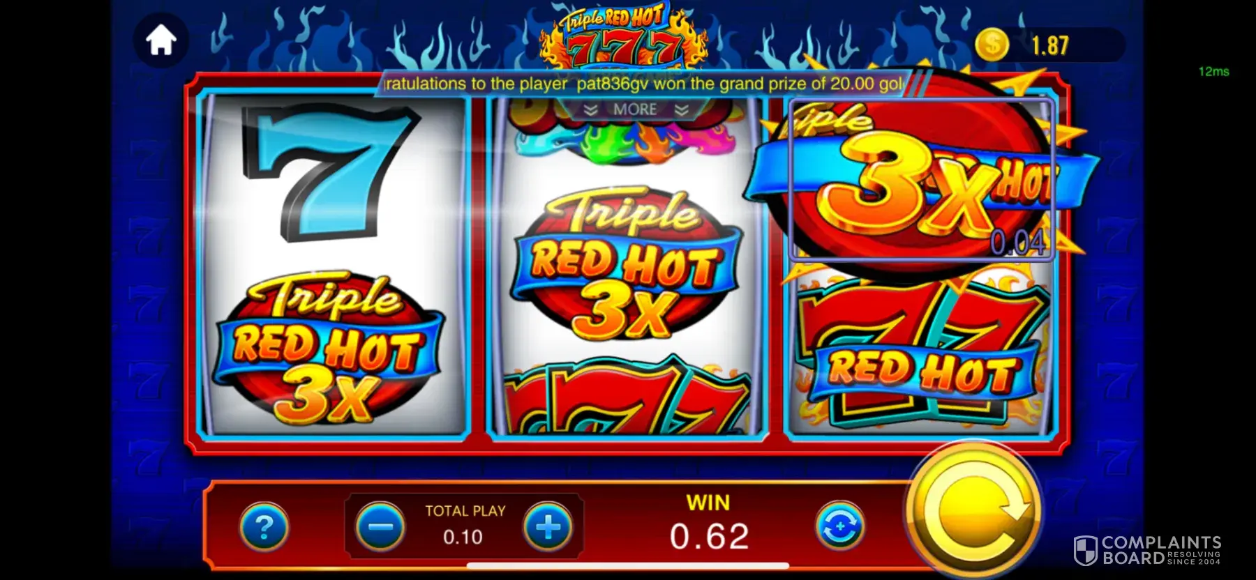 I played the new game red hot 7s and won but when I changed games it took my credits