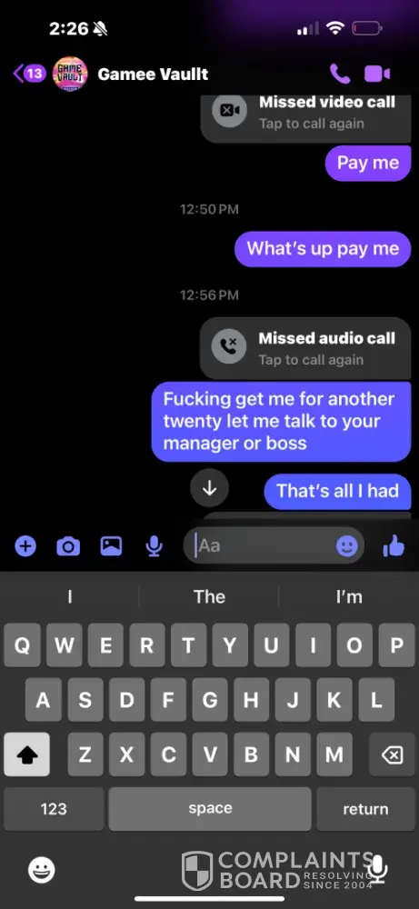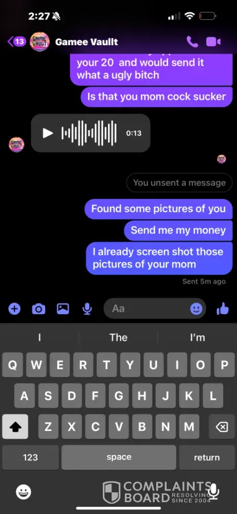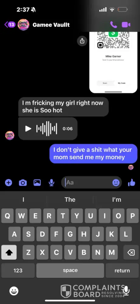 so i was playing gamevault i sent $10 to cashapp…he put $24 on the game for me by accident and he asked me to log off of the game bc that was the only way he could take his money off of there…so i logged off and i jokingly said “if you want to give me extra money you can†he then said to me “[censored] you†and he took every bit of the money off of gamevault from me…