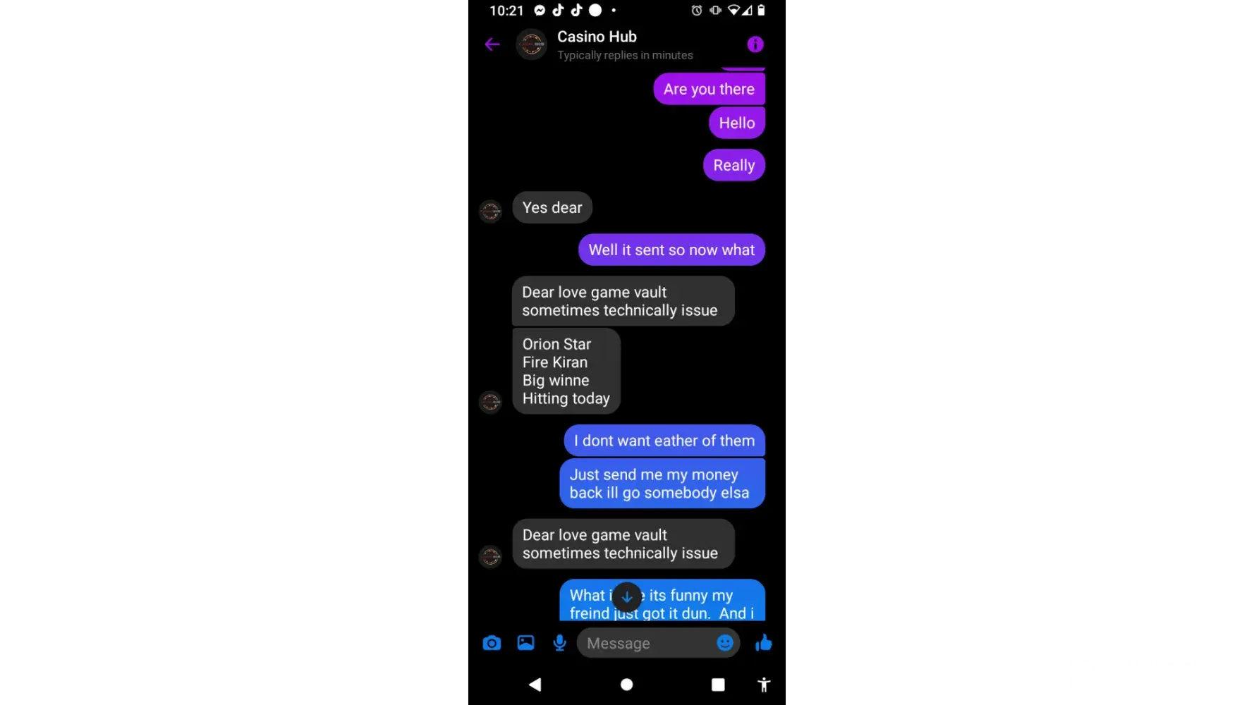 I had uploaded $10 dollars to one of the Facebook gaming platforms. Tje facebook page is called Para Casino 777 and they support game vault. I won $112 and some change. The platform is now refusing to cash out my winnings and has blocked me from communicating with them. I just want to make people aware of this matter so it does not happen to other people who put the trust in this Facebook platforms. This business has refused to give me the money I have won and will not refund my money back I put into the game. I have screenshot of the messages between this business as well and a picture of my winning in the game. I am having trouble uploading them in this report, but if you would like I can email them once I get a respond. Please help me. I don't know what to do in this type of matter. I am a single mother and I just want people aware of what is happening