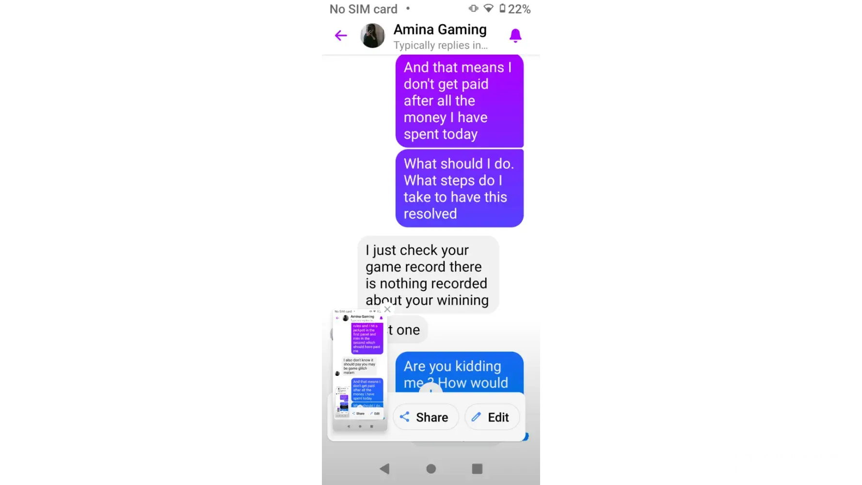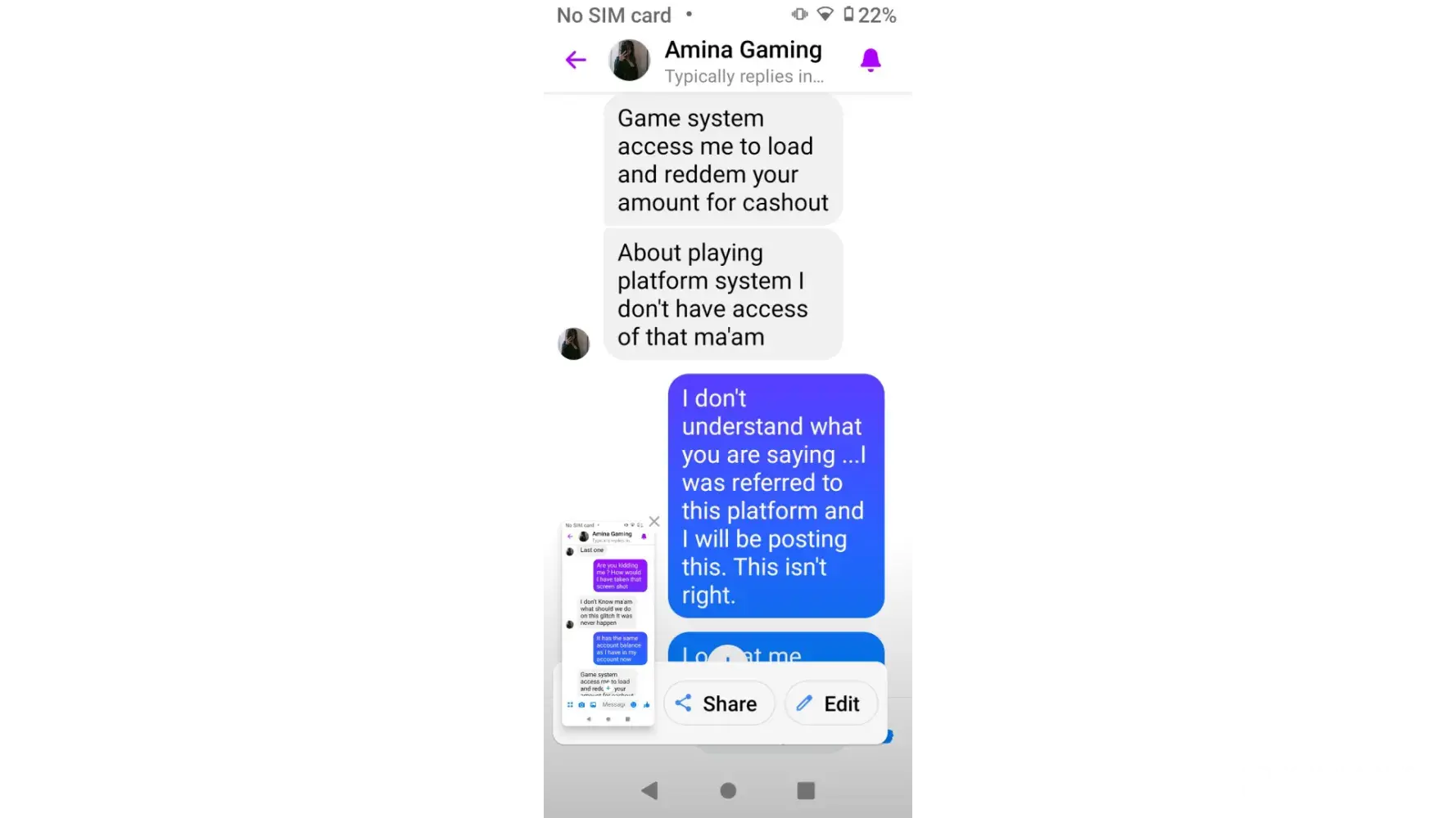kida gaming pro owes me 2 cashouts of $59 a piece. they messaged me cashouts done and blocked me. on January the 11th 2024