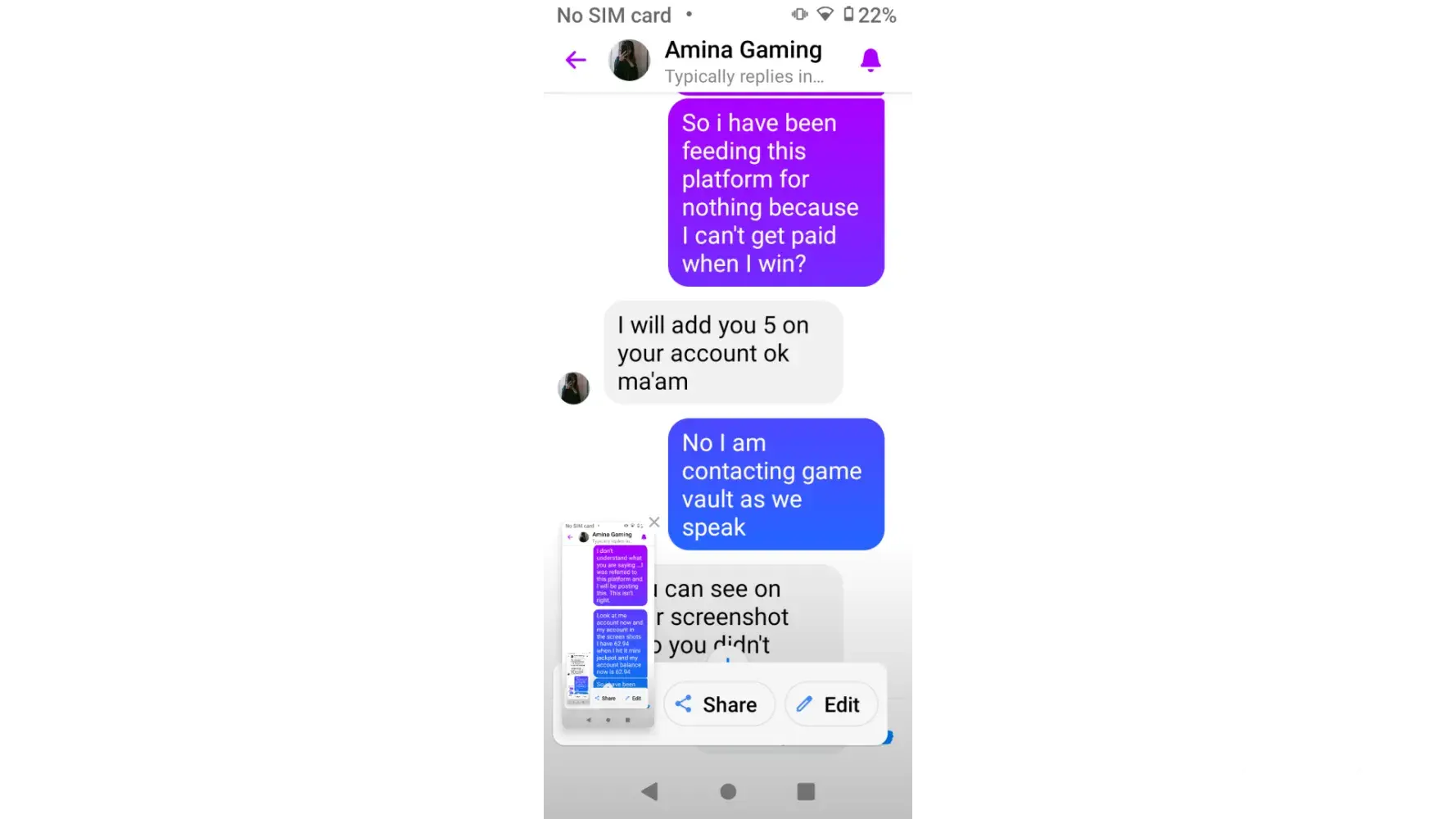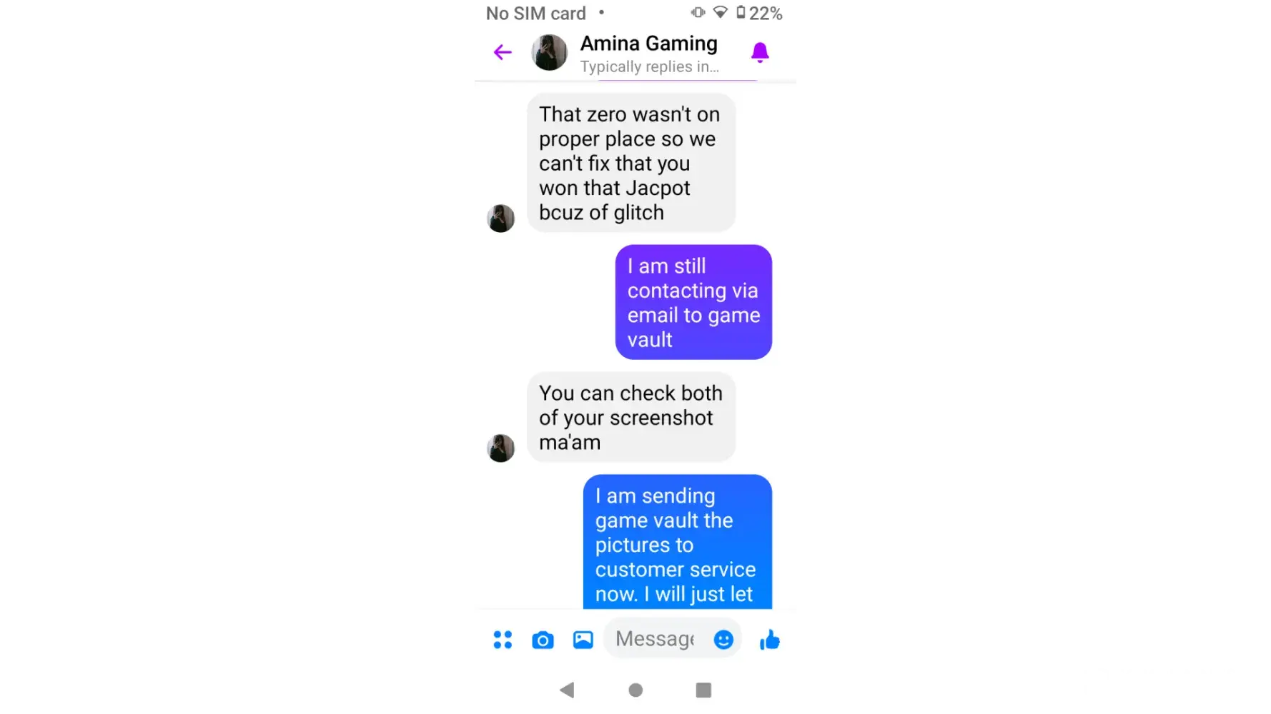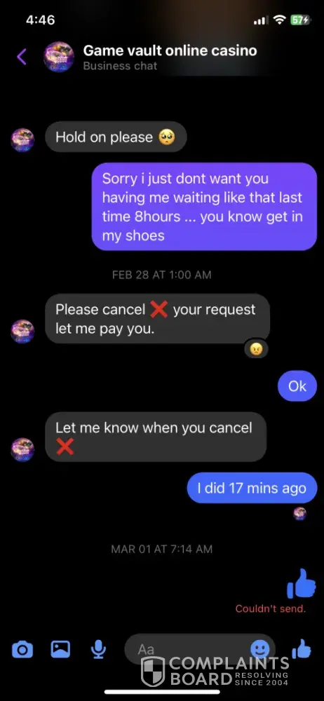 I have been trying to receive my winnings for two different occasions where I won and was not paid the correct amount for what I had won. On one occasion it was for $1,000 win and I was only paid $10 the other occasion was a $500 win and I got paid $50 I have screenshots of the two times I am complaining about and I cannot get anyone to do anything about it. I just want game vault to be fair and honest just as I am about what I have won. Game vault agent told me they couldn't fix it cause all they do is pay for winning. They have seen both screenshots of both wins of mine and I am just now getting a link from them to send y'all this complaint.