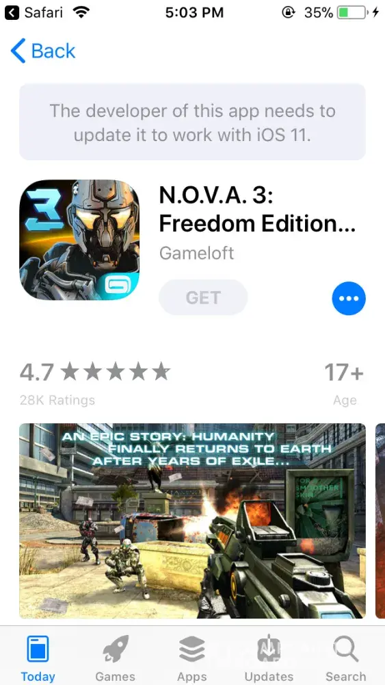 Please can you all update this game I really would love to start back playing nova 3 freedom edition. It say the game is not updated. I can't download it so please fix it. It's says developer of this app needs to update it to work with IOS 11. Again please update Nova 3. I love this fave online and offline but please don't change anything I love talking through the mic with my teammates. This is truly the best game I have ever played.