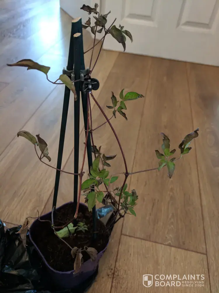 Ordered 3 plants, totalling £35.00. The clematis was the most expensive one at £15.00. The delivery took 3 weeks to arrive and the clematis was dead. The other plants were certainly not healthy either. They all looked like they had been bought from the end of season dead stock in a garden centre but the clematia was my main complaint. It was supposed to be a summer flowering plant supplied in a 5l pot. It was dead twigs and leaves and was certainly not in a 5l pot! No buds or blooms at all. Awful. I have sent the company 2 emails asking for a refund and have still not received any response. There are so many complaints about this company they are a con company and I don't understand how they are trading legally. Products are certainly not as advertised, customer service doesn't exist and they should be fined for mis selling!