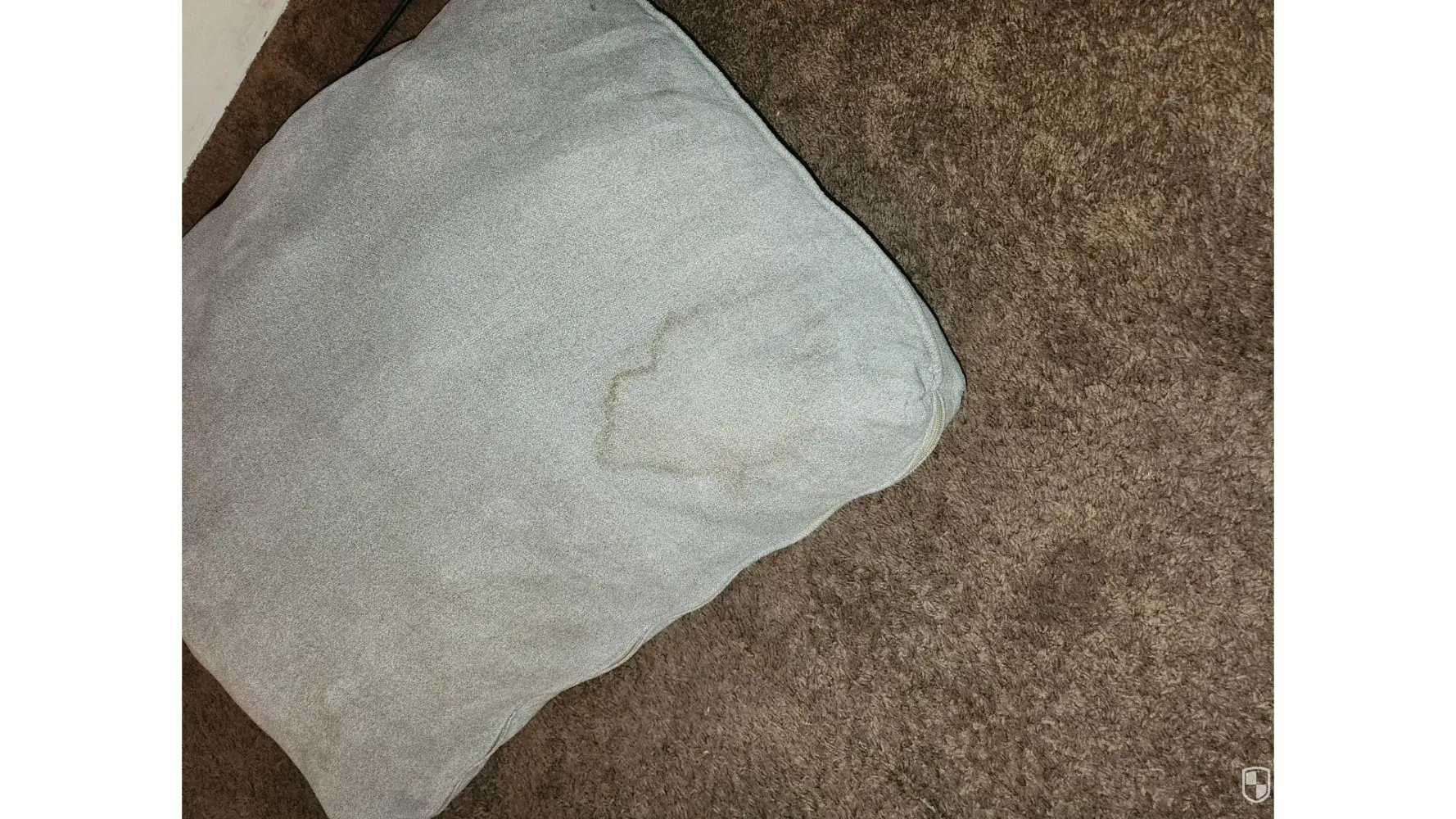 Desired outcome: I would like the grease professionally removed, but the company will do nothing about the loose fabric and disgraceful stapling that can be seen in the photos.