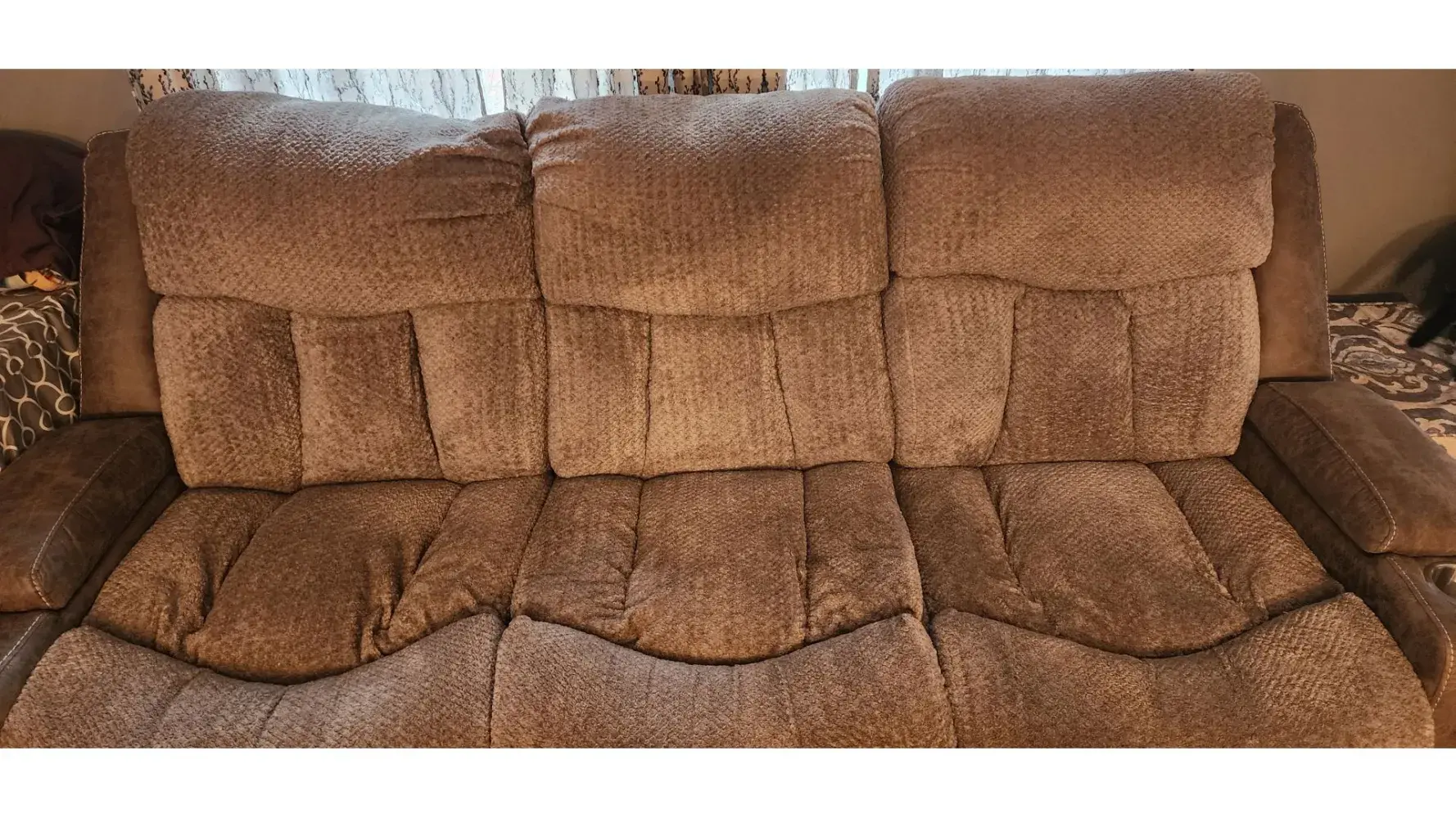Nothing special about this special order which was delivered 7/24/23 and reassembled on site 7/25/23. The reclining furniture is a badly-stapled mess that requires placement against a wall so you can't see the back. However, mine must be in the center of the room and fully exposed. There is a 5" grease streak on the chair and fabric is so loose on the sofa that there appears to be a softball underneath the fabric.