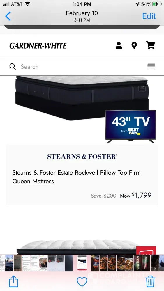Hello I purchased a Stearns and Foster mattress back in January 2021. Within 30 days I can't acted Erica Rehbein my sales agent and also spoke with someone that said he was from the corporate office by the name of Kendrick. We spoke on the phone and emailed back-and-forth as well. My mattress went on sale within 30 days. Kendrick asked for proof so I sent him a picture with a timestamp and I haven't heard a response. I have emailed him regarding my price adjustment on several occasions with no response. Kendrick was very rude and unprofessional to me when I spoke with him in the phone . I am very disappointed in the way this matter has been handled. I was also charged delivery fee which I was not supposed to be charged per our verbal agreement when my furniture was purchased. Also my adjustable bed frame was delivered and the technicians broke it when they put it together. It took them several weeks to bring me another one. I'm asking for a response to price adjustment. Thank you.